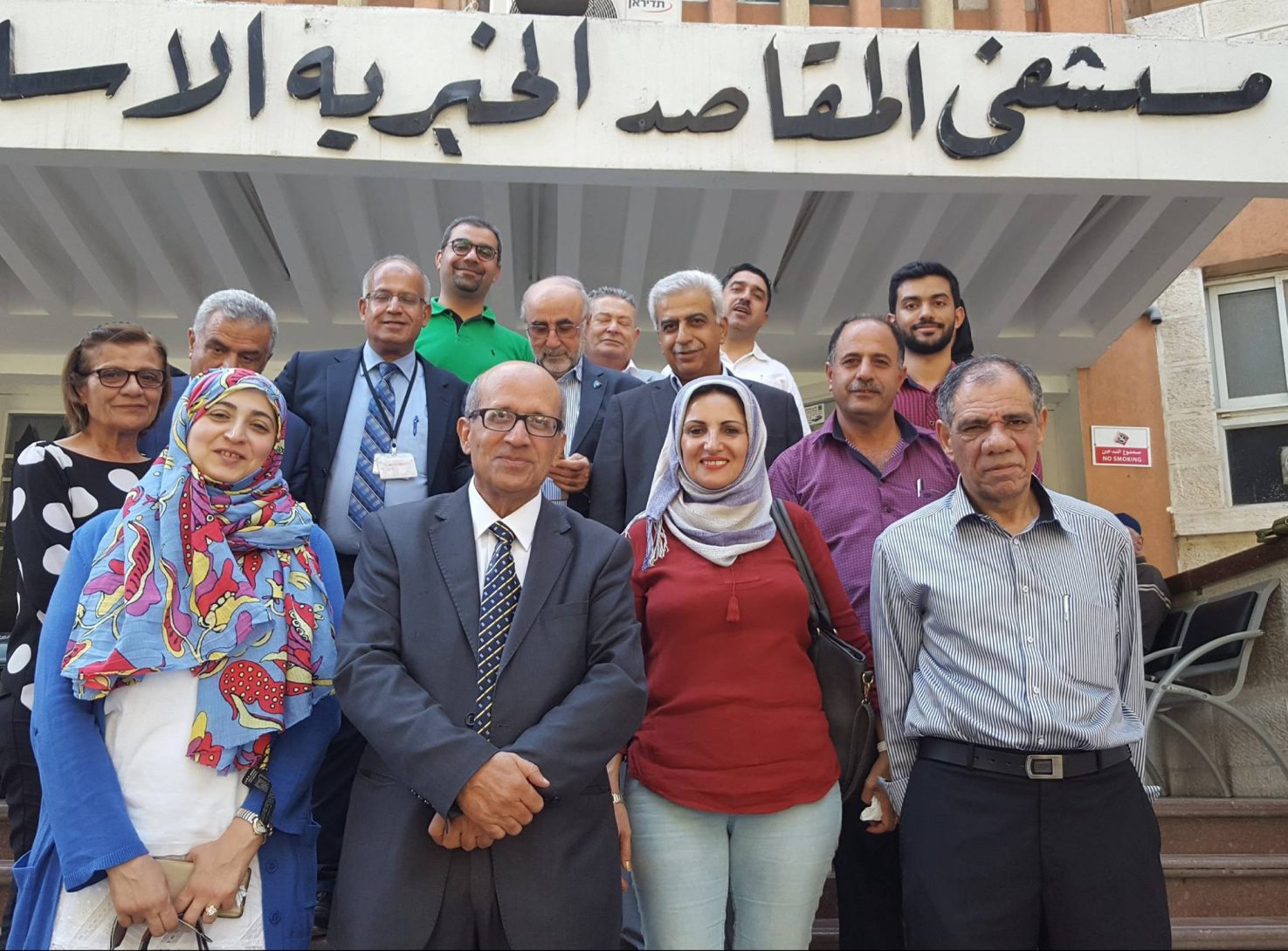 جانب من الوفد الطبي الاردني المشارك في اللقاء العلمي (عمان — القدس الثاني ) والذي انعقد في مدينه القدس الشريف في قاعه المحاضرات في مستشفى جمعية المقاصد الخيريه الاسلاميه في القدس الشريف والذي نظمته لجنه دعم مستشفى المقاصد في القدس الشريف التابعه لنقابة الاطباء الاردنية,,